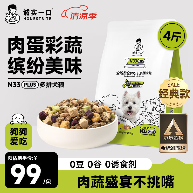 诚实一口N33PLUS全阶段全价冻干多拼犬粮2kg*4包(8kg)
